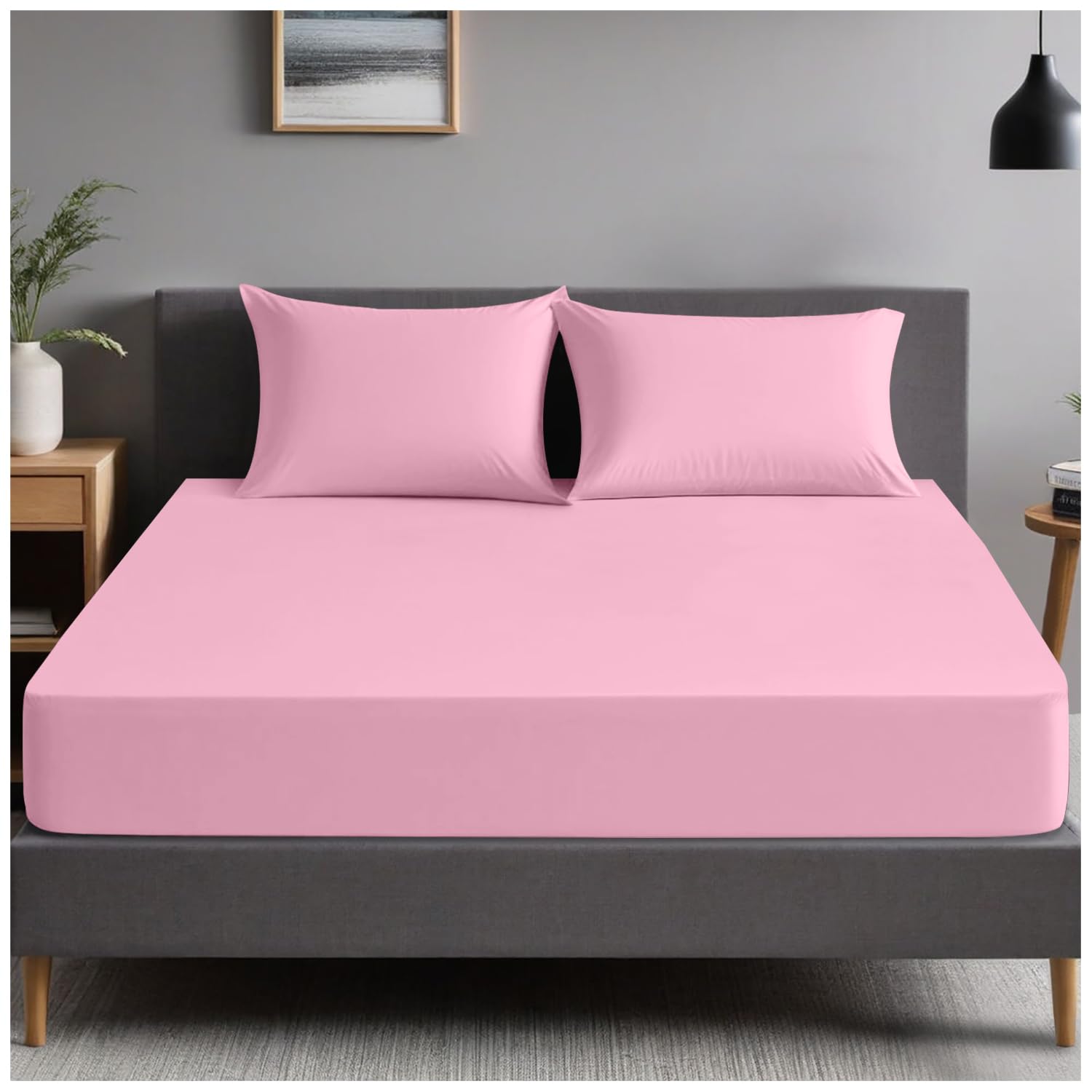 - Premium Polycotton Fitted Sheet: Made from soft and breathable polycotton, this super king-sized fitted sheet provides luxurious comfort and a cozy night’s sleep while ensuring durability and easy maintenance.
