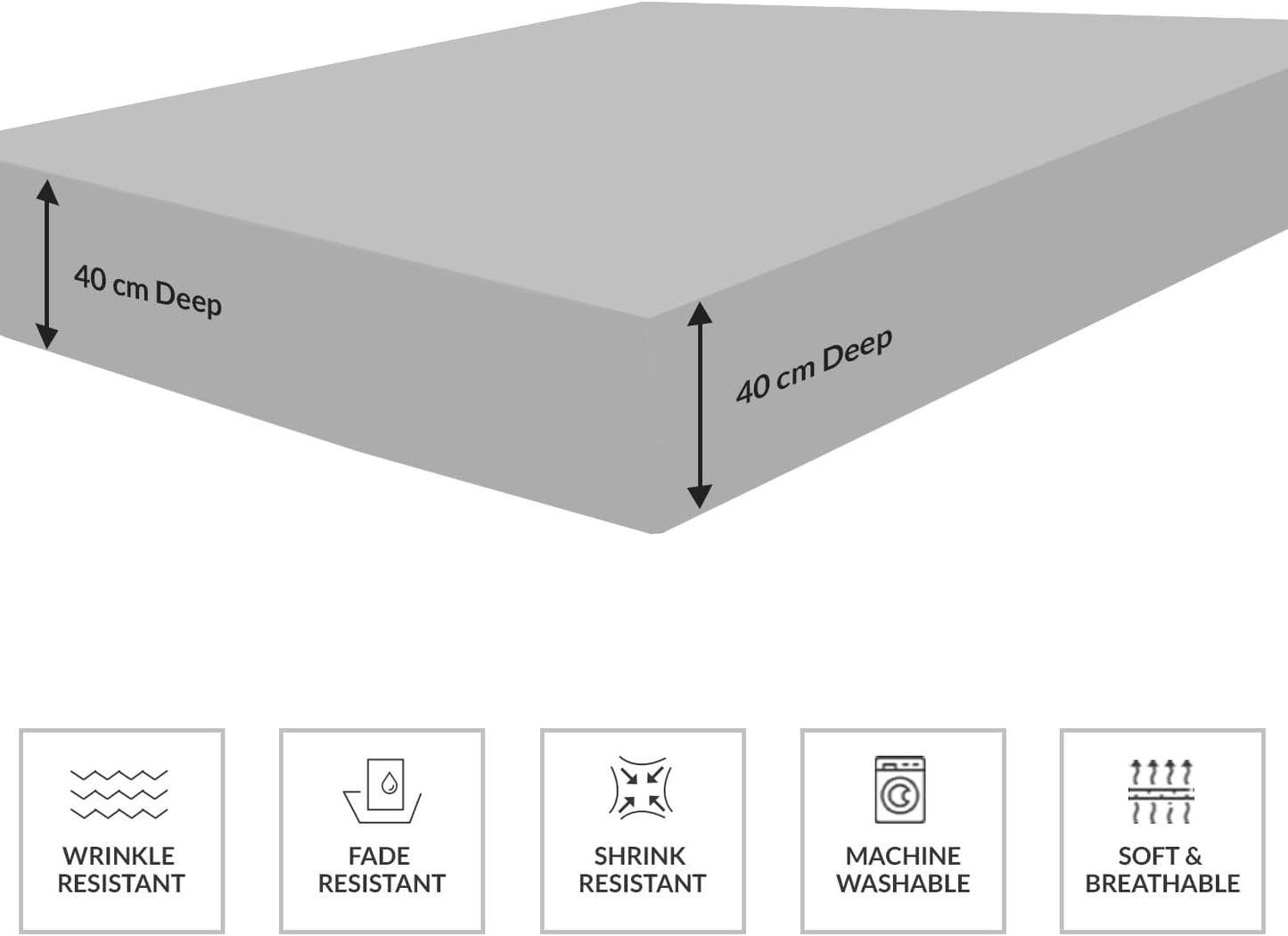 Fitted Sheets Extra Deep Pocket 40 cm (16 inches) Durable Elastic Bed Sheets - Premium Brushed Microfibre Fitted Sheets - Ultrasoft Hypoallergenic Fade Resistant