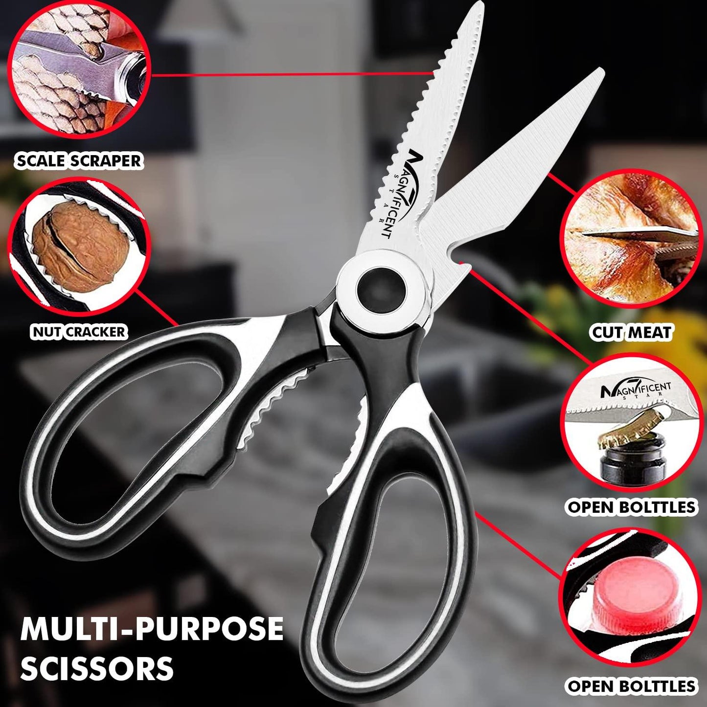 Magnificent Kitchen Scissor, Heavy Duty Scissors for Kitchen Use with Safety Cover & Soft Grip & Multi-Functional Utility Scissors, Shears for Meat Poultry Herbs Cutting, Bottle Jar Opener