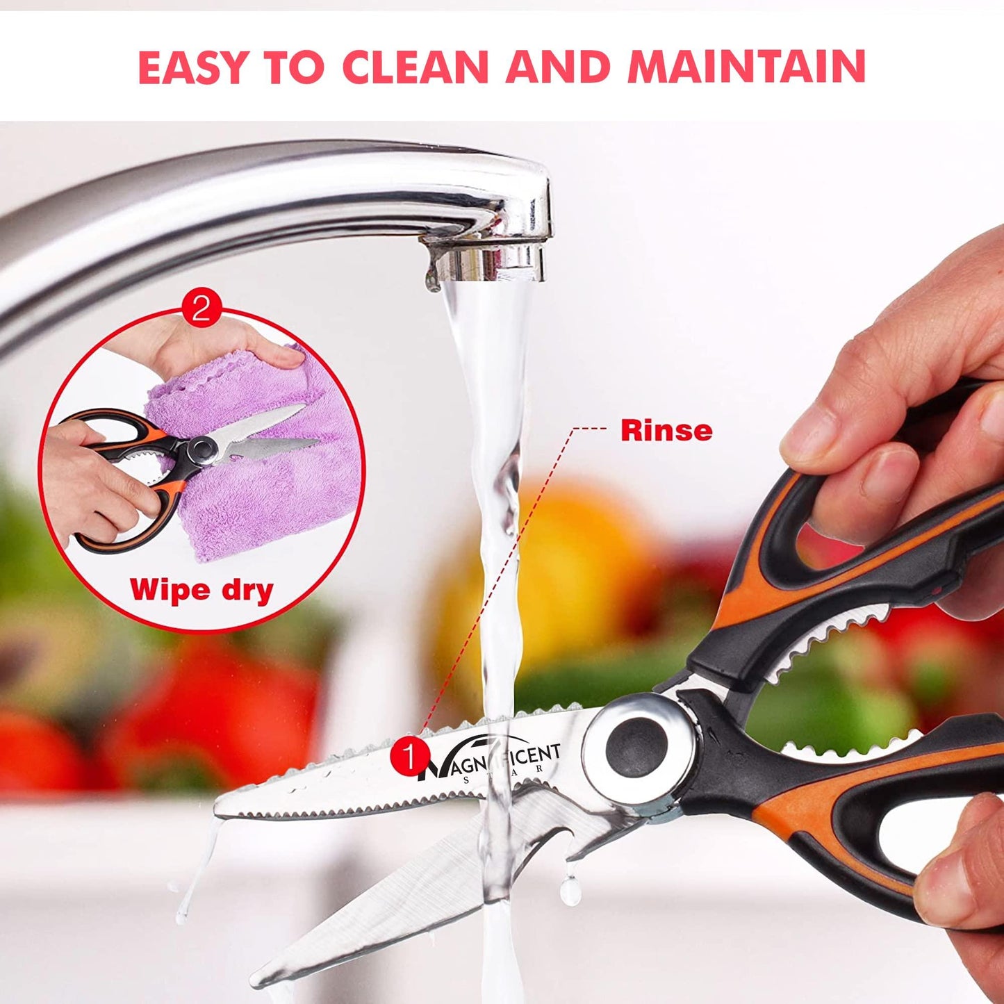 - ✅🔥【Magnificent Kitchen Scissor】 Our heavy-duty kitchen scissors are designed to provide exceptional performance and durability. Crafted from high-quality stainless steel, these scissors are built to withstand the demands of a busy kitchen. The sharp blades with serrated edges ensure precise and effortless cutting, whether you're working with meat, poultry, herbs, or other ingredients. these scissors offer excellent control and maneuverability. They are a must-have tool for any kitchen, whether you're a professional chef or a home cook.