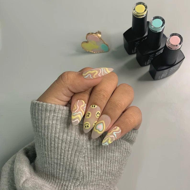 Smiley Pastel Reusable Press On Nails