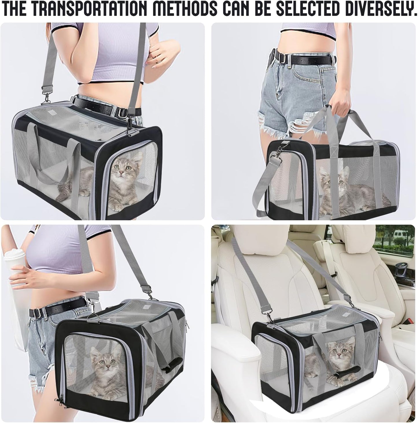 TIYOLAT Cat Carrier, Pet Carrier Airline Approved, Kitten Carrier for Small Dogs Cats Under 16 Lbs, Collapsible Soft Sided Puppy Carrier with Adequate Ventilation,4 Mesh Windows,3 Entrances (Black)